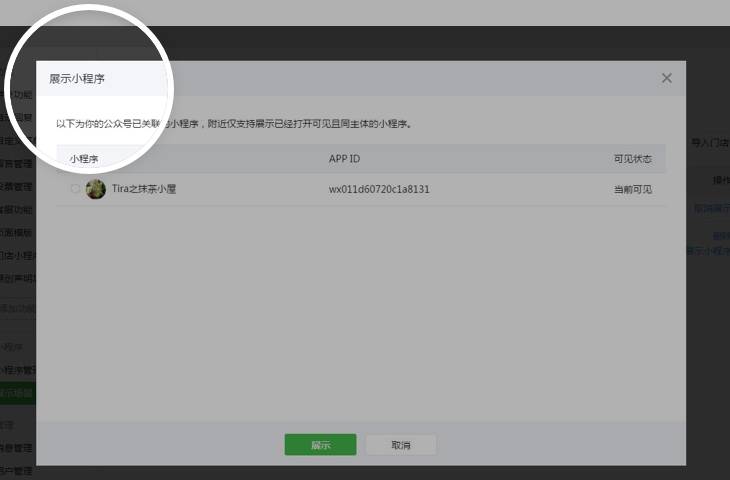 微信公众平台支持两种方式设置小程序展示在“附近的小程序”。