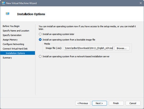 安装选项- 选择第二个选项,如下所示;然后单击浏览并从下载文件夹中选择 Windows 11 ISO。